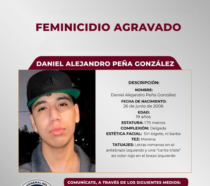La Fiscalía General del Estado (FGE) solicitó el apoyo de la ciudadanía para localizar a Daniel Alejandro Peña González, de 19 años, quien cuenta con una orden de aprehensión por su presunta responsabilidad en el delito de feminicidio agravado. Continúa leyendo Fiscalía pide apoyo para localizar a presunto responsable del feminicidio de Destiny