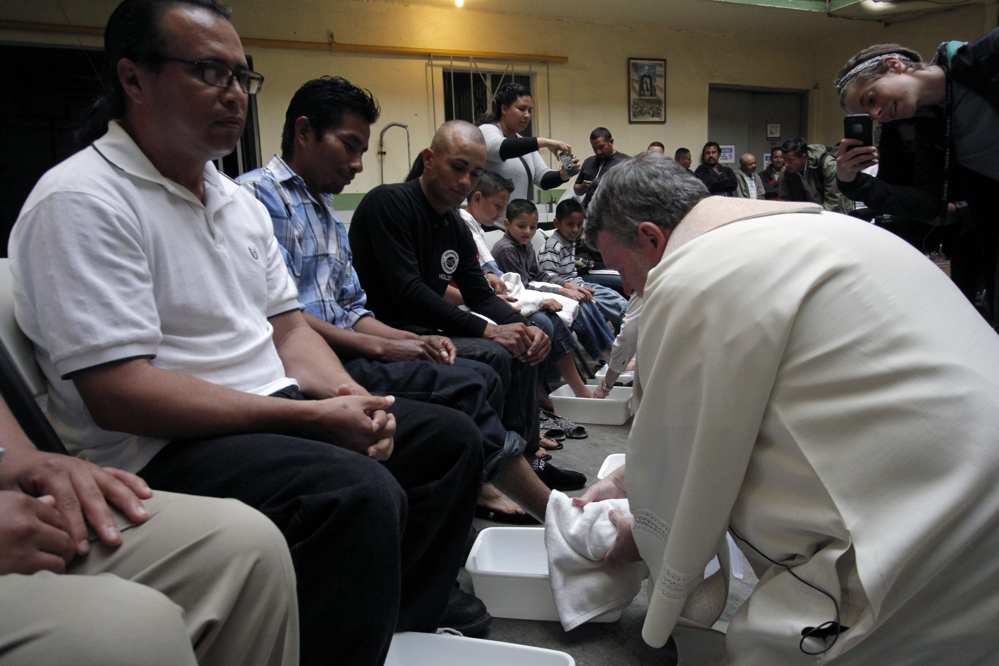 Tijuana.-En el marco de la celebración religiosa de Semana Santa, se realizó el «lavatorio de pies» en la Casa del Migrante de Tijuana, un evento que encabezó el padre Pat Murphy, director del lugar.