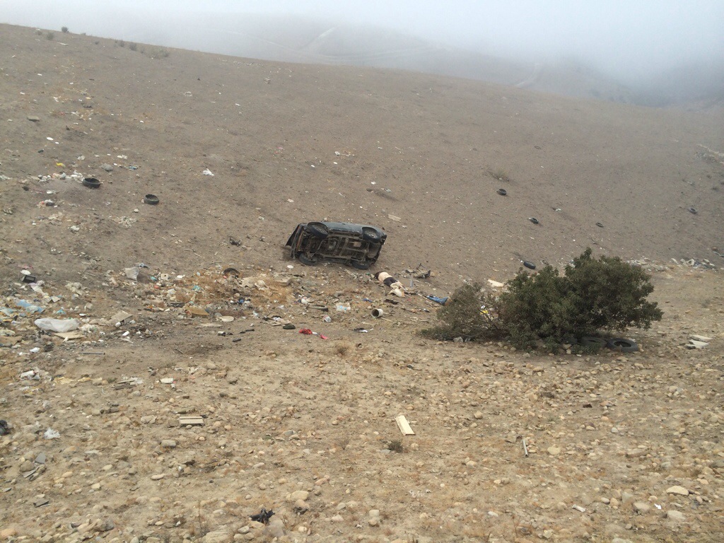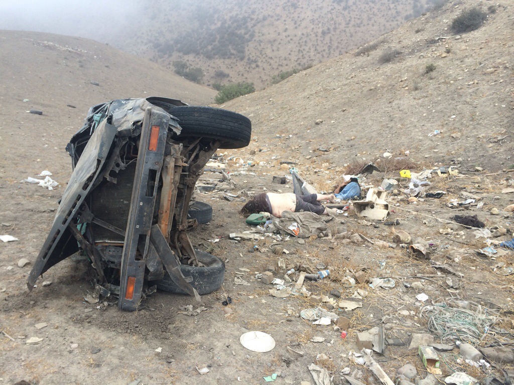 Debido a la falta de precaución del conductor, que no limitó la velocidad al tomar una curva, la vagoneta salió del camino hacia la derecha y cayó a un desnivel de aproximadamente 40 metros de profundidad.