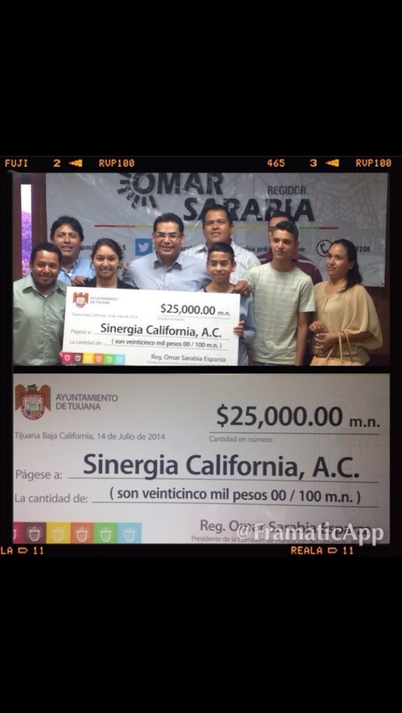“En esta ocasión se entregaron 25 mil pesos, para que los directivos de Sinergia California AC, que serán empleados para cubrir algunos gastos que tiene la asociación civil, es en el ánimo de invitarlos a que continúen trabajando por el bien de la comunidad tijuanense”, señaló Omar Sarabia.