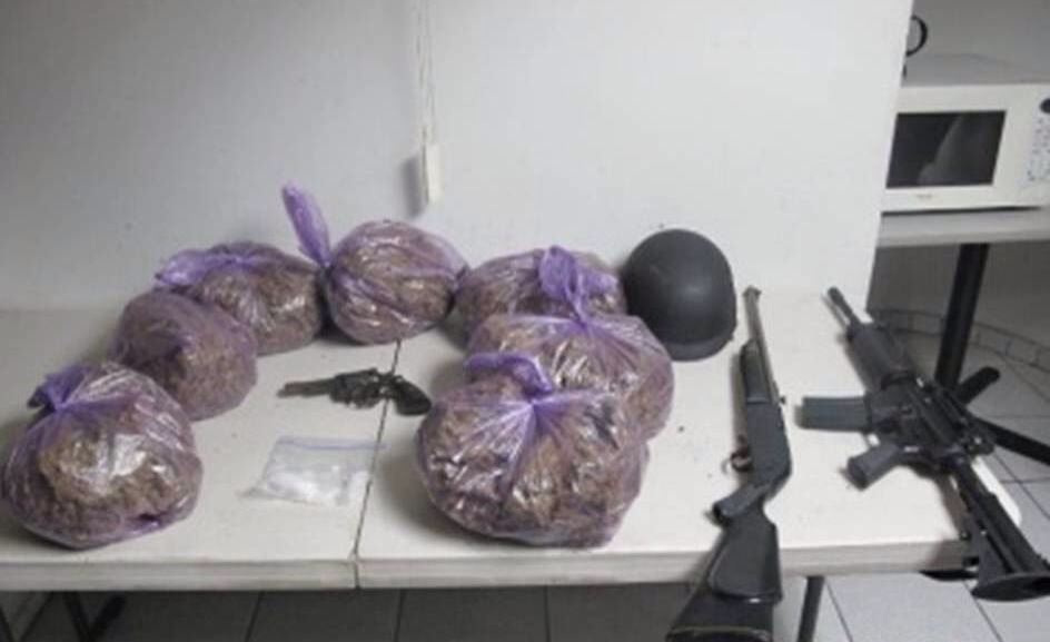 ENSENADA, B.C., .-Durante el pasado fin de semana la Policía Estatal Preventiva (PEP) aseguró a un sujeto en poder de 6 kilos 960 gramos de una hierba con características de la marihuana, 40 gramos de lo que al parecer es “ice”, además de un arma de fuego y otras dos de utilería que ocultaba en el interior de su vehículo.