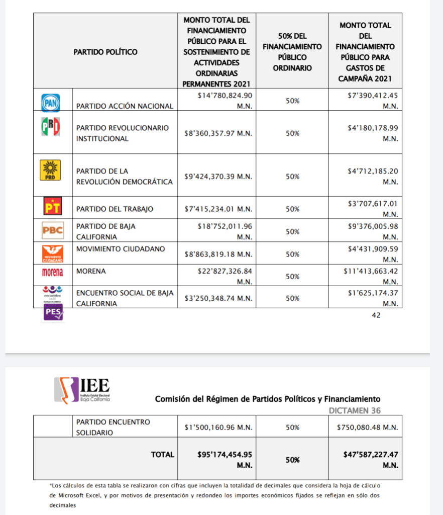 Mexicali, BC. –Un monto de 149 millones 890 mil 510 pesos es el recurso de financiamiento público autorizado por el Consejo General del Instituto Estatal Electoral de Baja California (IEEBC) para las actividades ordinarias de partidos políticos y gastos de campaña.