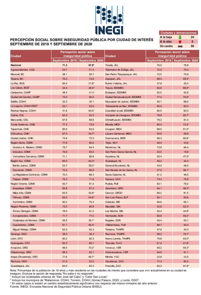 Tijuana, BC.- La Encuesta Nacional de Seguridad Pública Urbana (ENSU) que realiza el INEGI, revela que en Tijuana disminuyó la percepción de inseguridad, sin embargo, incrementó en Mexicali.