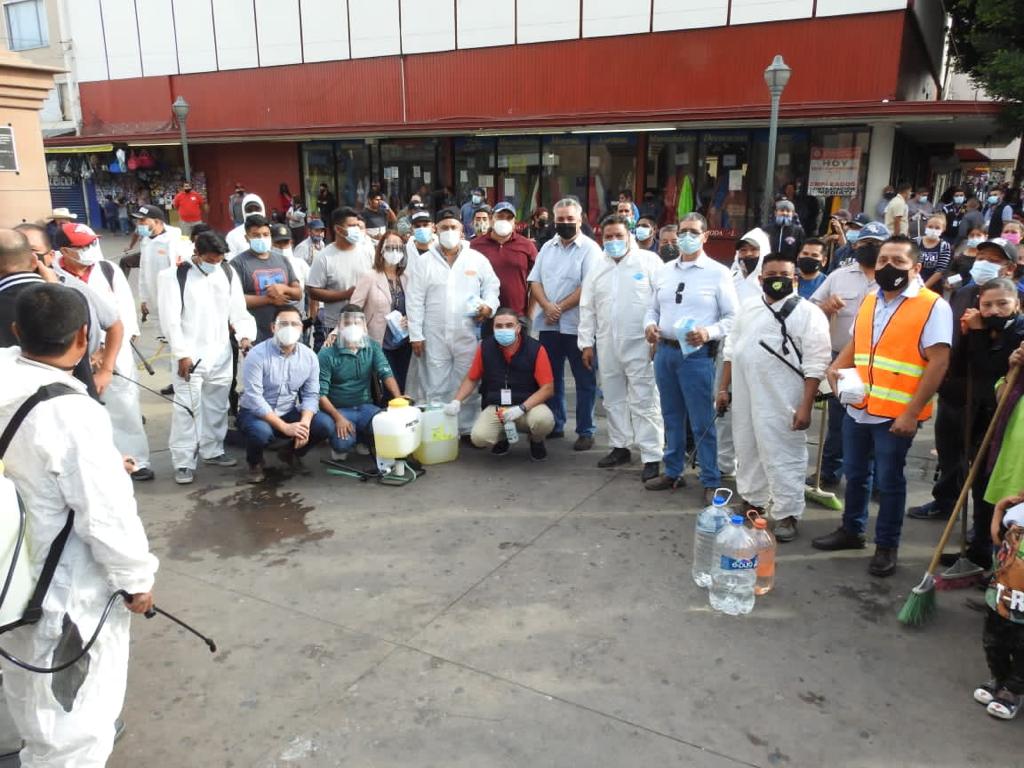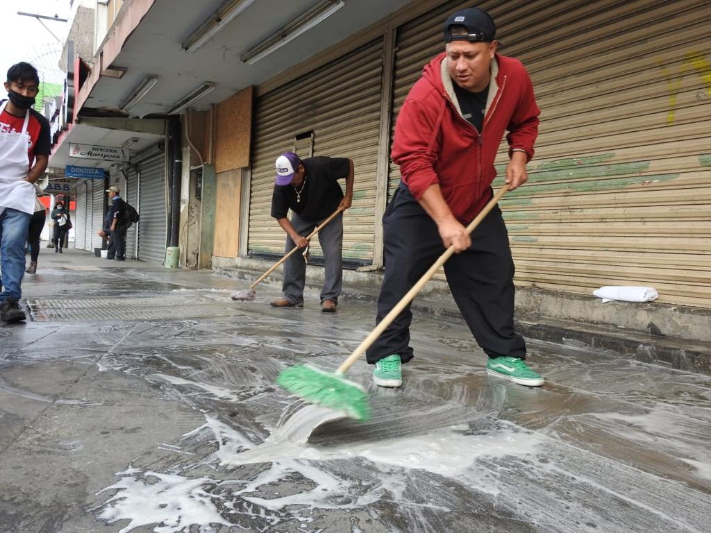 García Dworak informó que más de 100 personas apoyaron la iniciativa de las agrupaciones, con labores de lavado de bancas, guarniciones, banquetas, entradas de locales; además de barrido manual y la distribución de un líquido para desinfectar la zona e impedir la propagación del Coronavirus
