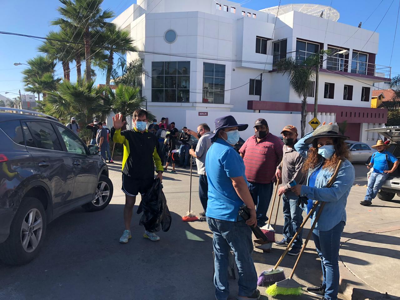 Tijuana, BC.- En respuesta a la emergencia sanitaria que se vive en la región, empleados de la dirección de Inspección y Verificación e integrantes de distintas agrupaciones de mercados sobreruedas realizaron labores de limpia y desinfección en Playas de Tijuana.