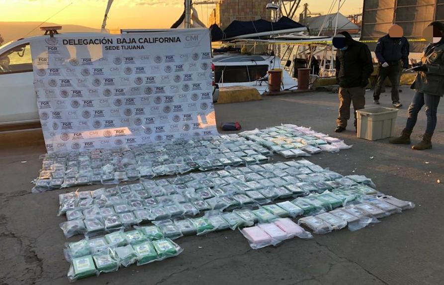 El aseguramiento se realizó en dos embarcaciones en el puerto de Ensenada, donde se aseguraron 270 paquetes de la droga.
