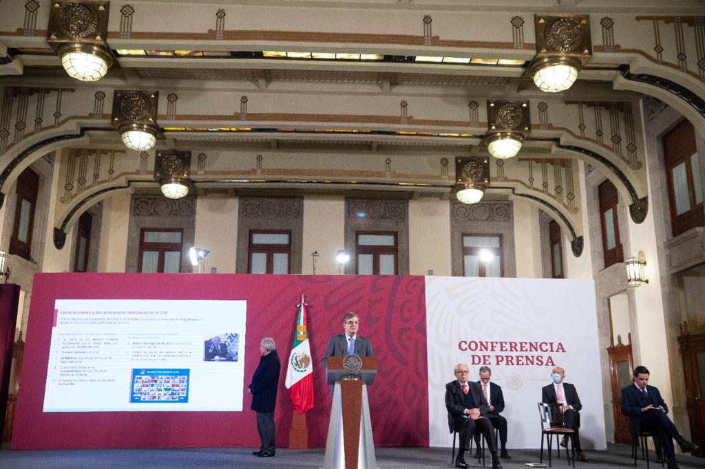 CDMX.- En el marco de la conferencia matutina que encabeza el presidente Andrés Manuel López Obrador, el secretario de Relaciones Exteriores, Marcelo Ebrard Casaubon, informó sobre la participación de nuestro país en la Cumbre Virtual de Líderes del G20, sobre la crisis económica y las alternativas para México y el mundo. Además, se refirió a los avances en el portafolio de proyectos y ensayos clínicos contra COVID-19 para garantizar que nuestro país tenga acceso amplio y oportuno a la vacuna.