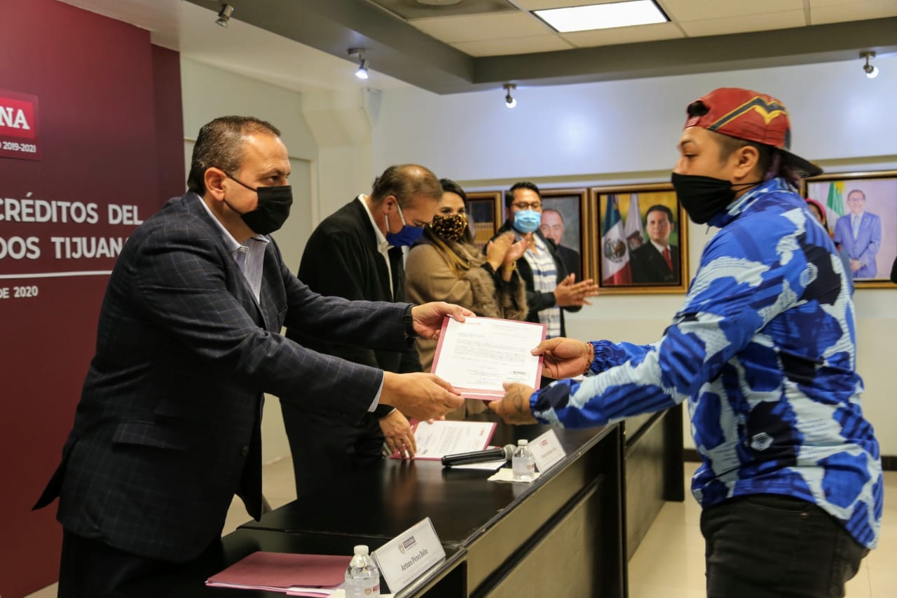 Tijuana, BC.- Con el propósito de promover el emprendimiento y la generación de autoempleo, el presidente municipal, Arturo González Cruz, entregó 20 créditos al mismo número de emprendedores, apoyo que representa un recurso de más de 200 mil pesos, destinados para la reactivación económica de las familias tijuanenses.