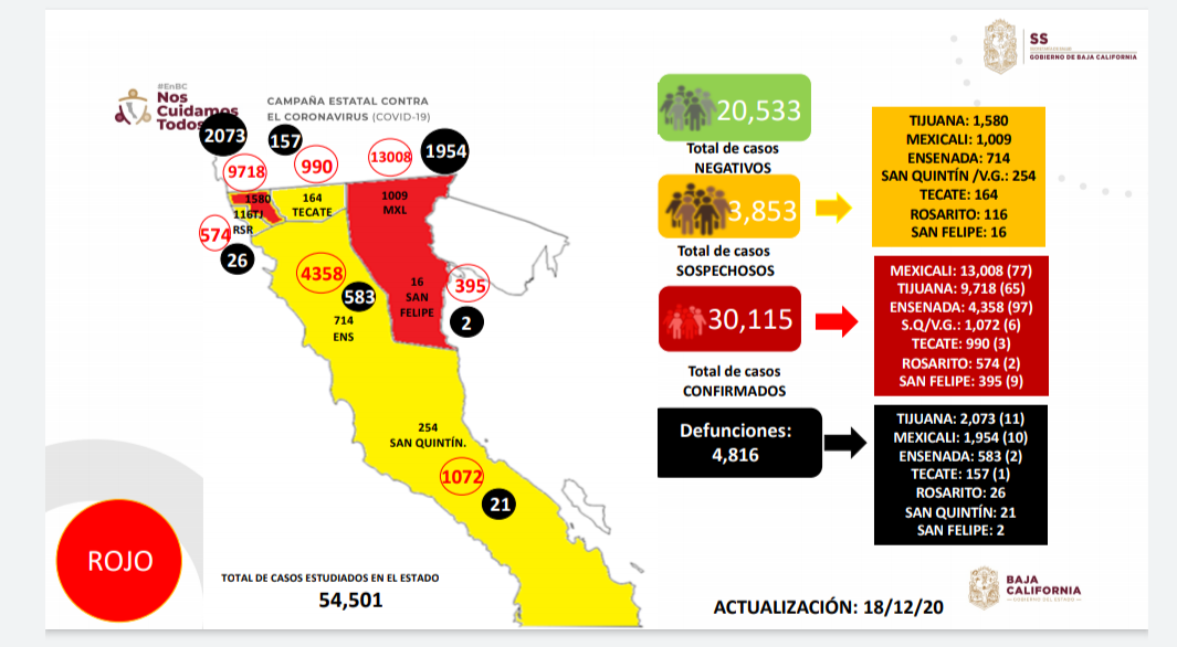 Tijuana, BC.- La cifra de contagios de covid19 en Baja California rebasa los 30 mil casos acumulados y la ocupación hospitalaria es del 81 por ciento.