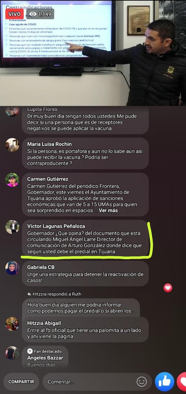 Luego, desde la cuenta de Víctor Lagunas Peñaloza, se le pidió al mandatario opinar respecto a una supuesta filtración de un documento, hecha desde la oficina de comunicación social del XXIII Ayuntamiento de Tijuana.