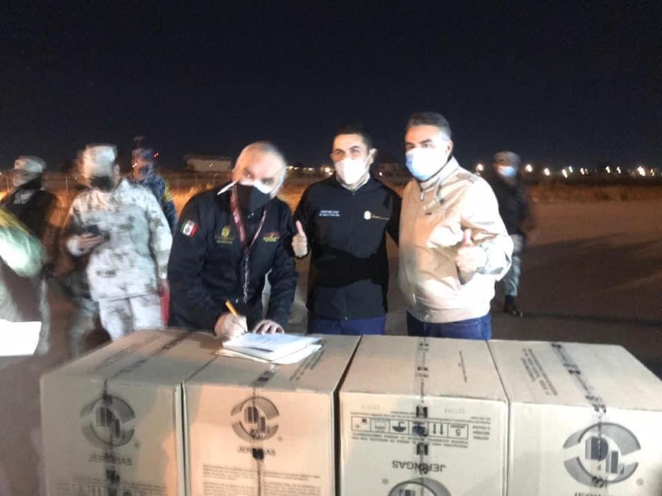 Tijuana, BC.- Las primeras dosis de vacunación contra el covid19 llegaron esta tarde a la base aérea militar ubicada en la colonia 70-76.