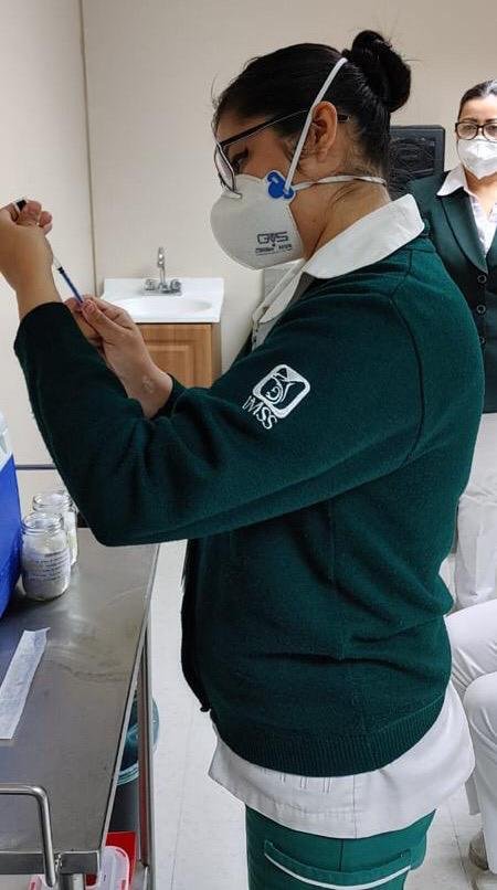 La vacuna COVID-19 en la Representación Baja California del Instituto Mexicano del Seguro Social (IMSS) se aplica a personal de primera línea en