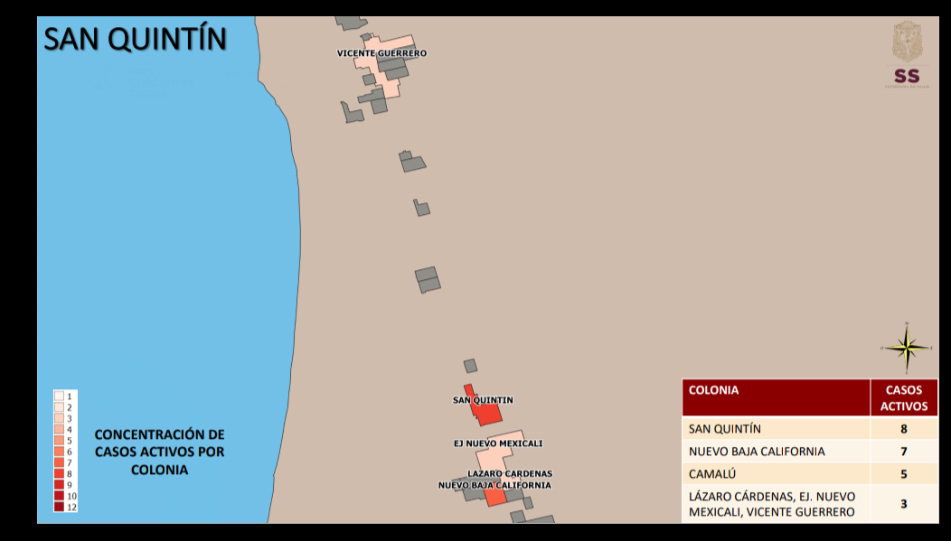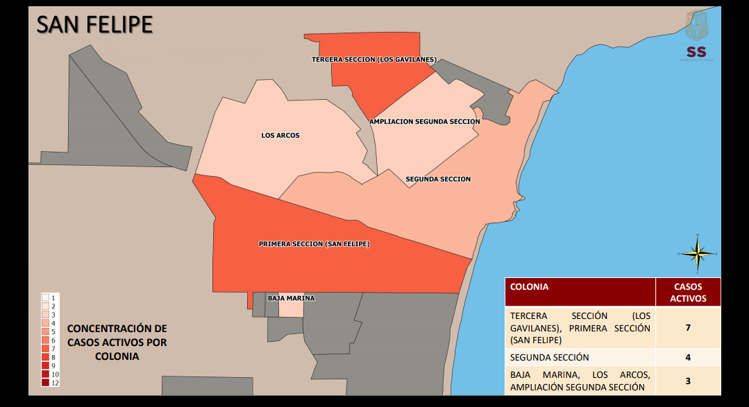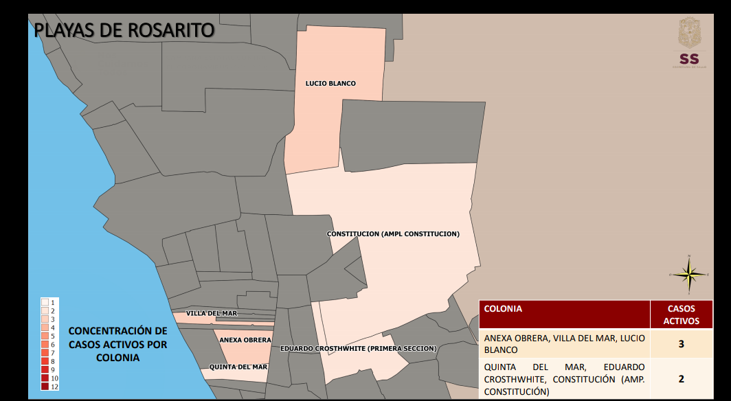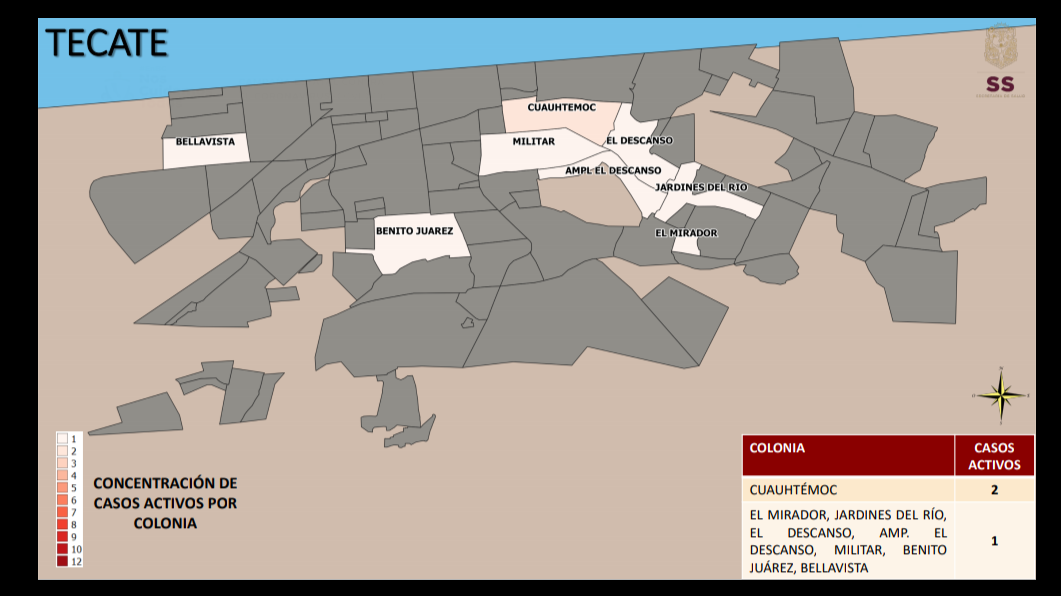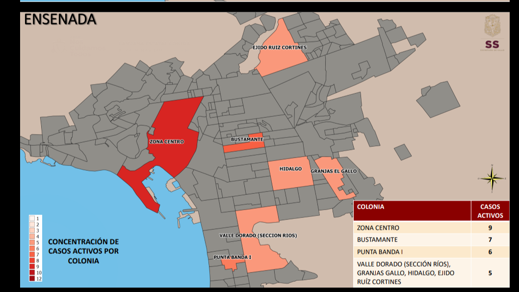 Este martes 19 de enero, las colonias con más casos activos de covid19 en las diferentes colonias de la entidad, fueron presentadas por Alonso Pérez Rico, secretario de salud en el estado.