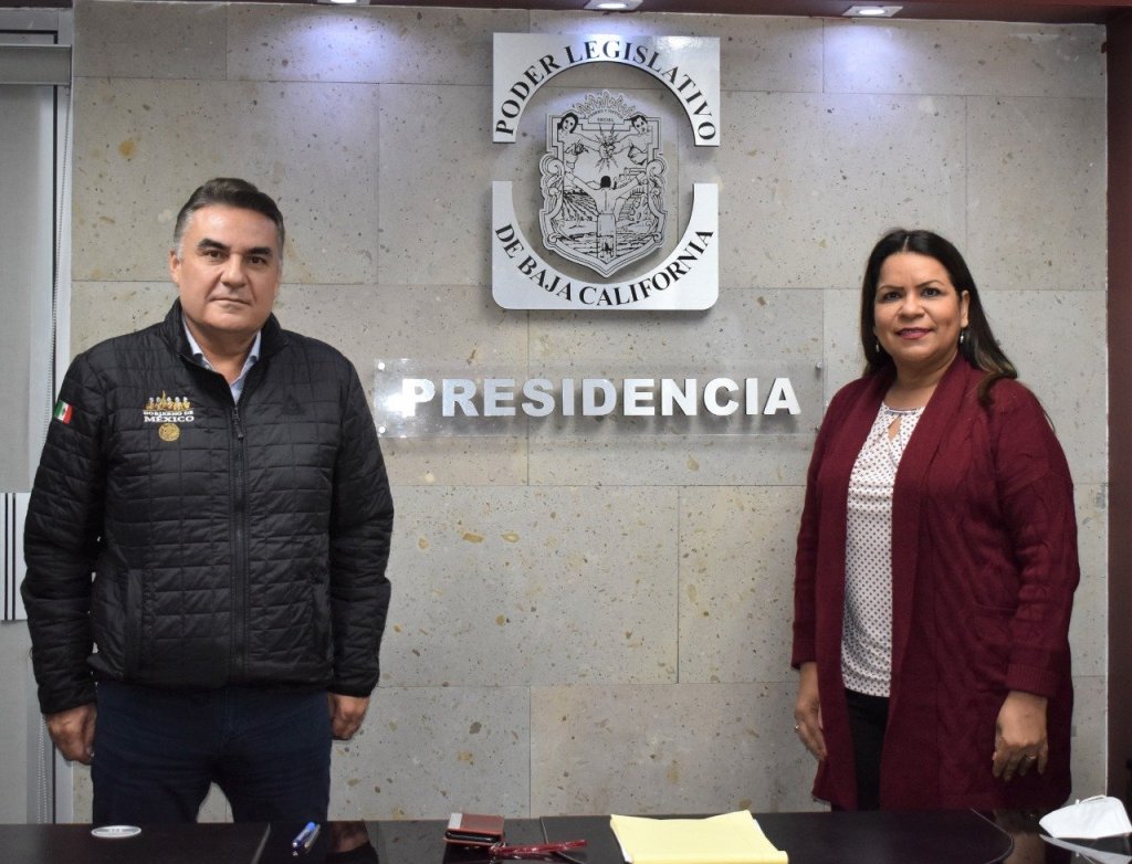 Mexicali BC.- El Delegado Federal Único de Baja California, Jesús Alejandro Ruiz Uribe, sostuvo un encuentro con la diputada presidenta de la Mesa Directiva de la XXIII Legislatura de Baja California, Eva Rodríguez, donde abordaron el tema de la política social del presidente de México en Baja California, Andrés Manuel López Obrador.