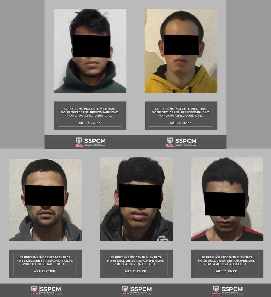Tijuana, BC.- Elementos de la Secretaria de Seguridad y Protección Ciudadana Municipal (SSPCM), capturaron a cinco personas del sexo masculino por el presunto delito de portación de arma de fuego.
