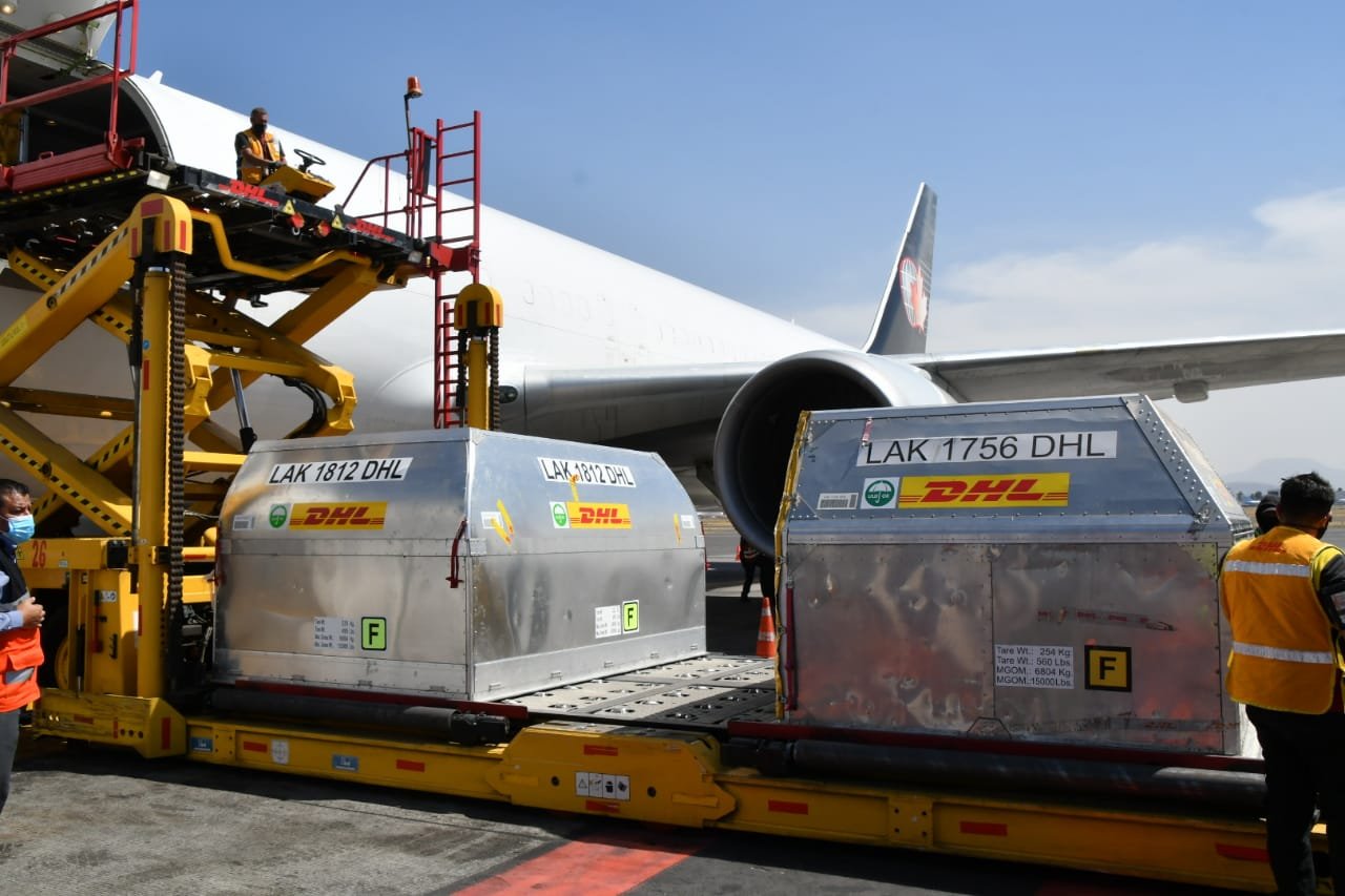 Una vez que el biológico baja del avión, inicia el proceso de desaduanización para entregar el cargamento a la empresa de paquetería que, con la custodia de la Secretaría de la Defensa Nacional (Sedena), lo traslada a los centros de distribución y posteriormente a todo el país.