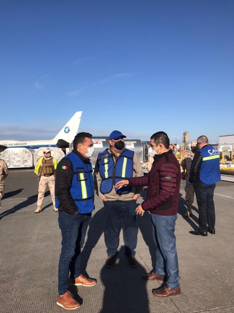 En punto de las 7:00 am., de este miércoles, el delegado federal único de Baja California junto con el Secretario de Salud del Gobierno del Estado, Alonso Pérez Rico, así como altos mandos del Ejército Mexicano, recibieron las vacunas en el aeropuerto internacional de Tijuana.