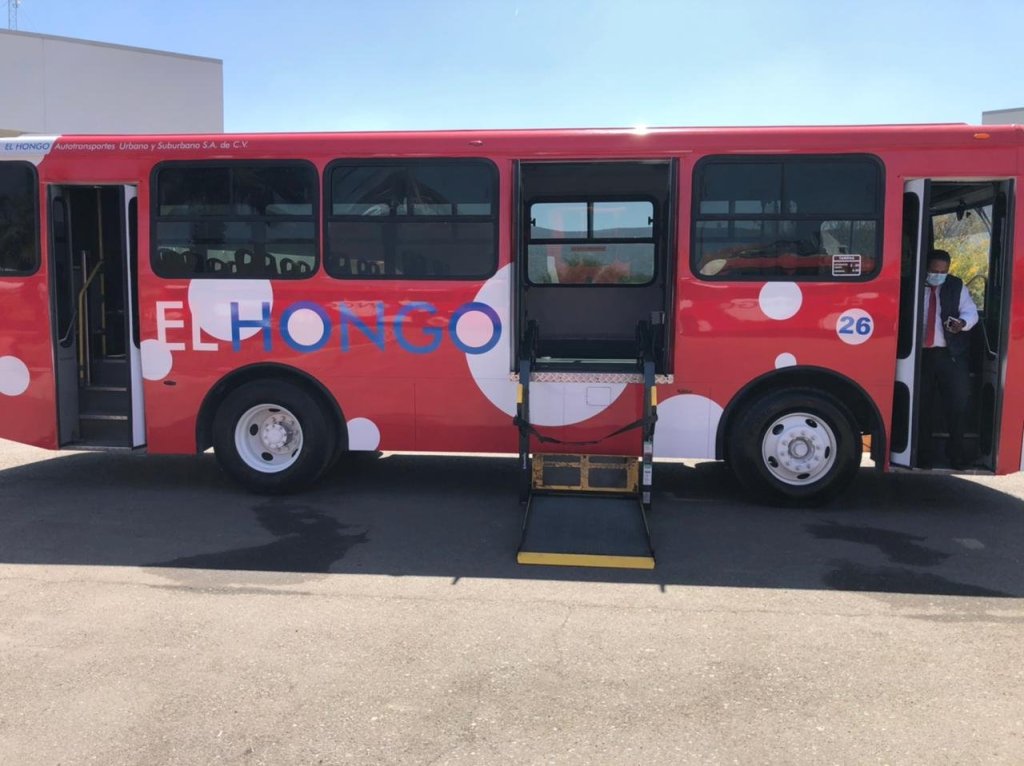 Humberto Cabrera Román representante de la empresa explica que para cubrir el circuito de 92 kilómetros desde Valle de las Palmas al centro se adaptaron diez autobuses con dispositivos que permiten que usuarios con movilidad limitada los puedan abordar.