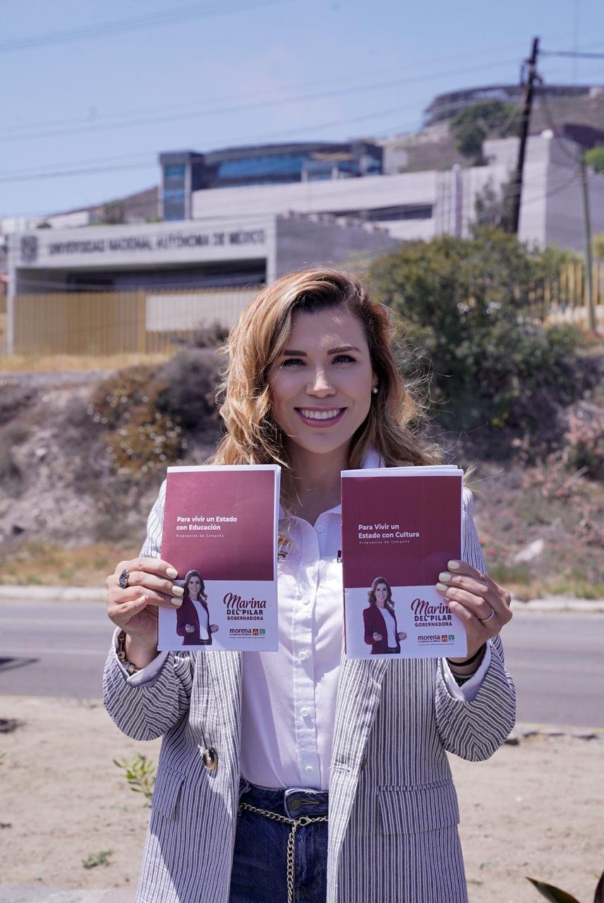 Frente a las instalaciones de la Universidad Nacional Autónoma de México, en Ensenada, Marina del Pilar expuso que entre sus principales propuestas se encuentra el acceso universal y gratuito a todos los centros escolares, el mejoramiento de la infraestructura, el combate al analfabetismo, posicionar la educación preescolar en el estado, refrendar el compromiso con el magisterio, asegurar la conexión a internet y fortalecer los apoyos a los estudiantes, desde las becas, útiles, uniformes, desayunos, entre otros, son parte de los compromisos que asumió que este martes la candidata.