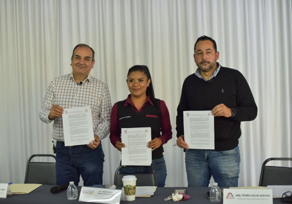 Tijuana, BC.- La aspirante de Morena a la presidencia municipal de Tijuana, Montserrat Caballero Ramírez, firmó un convenio de colaboración con los colegios de Ingenieros y Arquitectos de Tijuana.