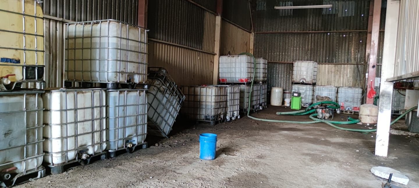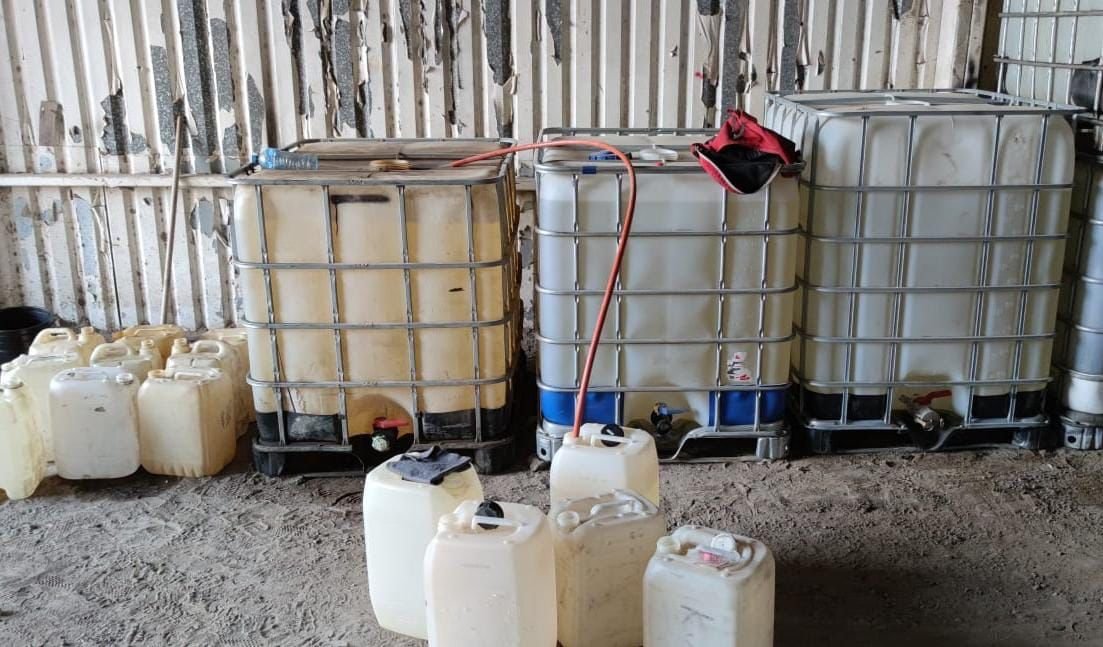 Derivado de una denuncia anónima, elementos de la PFM, realizaron una investigación de campo en las inmediaciones de la colonia Campestre Murua, ubicando un inmueble donde se almacenaba combustible.