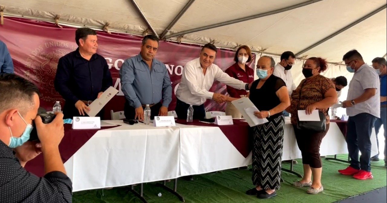 Los beneficiarios con los títulos agrarios provienen de los ejidos: Lázaro Cárdenas del Río, Ejido Rubén Jaramillo, Héroes de Chapultepec, Chapala, Valle Tranquilo y Capricornio.