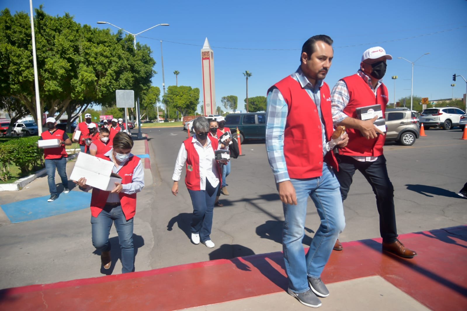 Baja California.- Con una visita a las instalaciones de palacio de gobierno de Mexicali, concluyó la jornada de entrega de cubrebocas que voluntarios del programa Caliente Ayuda® llevaron a cabo esta mañana en la capital del estado.