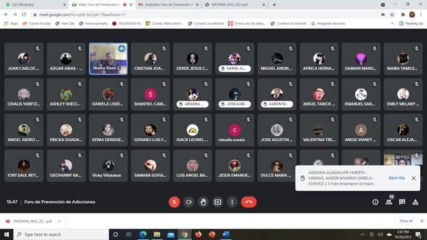 Baja California.- La Dirección de Prevención Ciudadana del Delito y la Violencia de la Fiscalía General del Estado de Baja California celebró el Foro Virtual contra las Adicciones en los municipios de Tijuana Mexicali y Ensenada mediante plataforma digital, informó Jesús Alfredo Pérez quien es Titular de dicha dependencia.