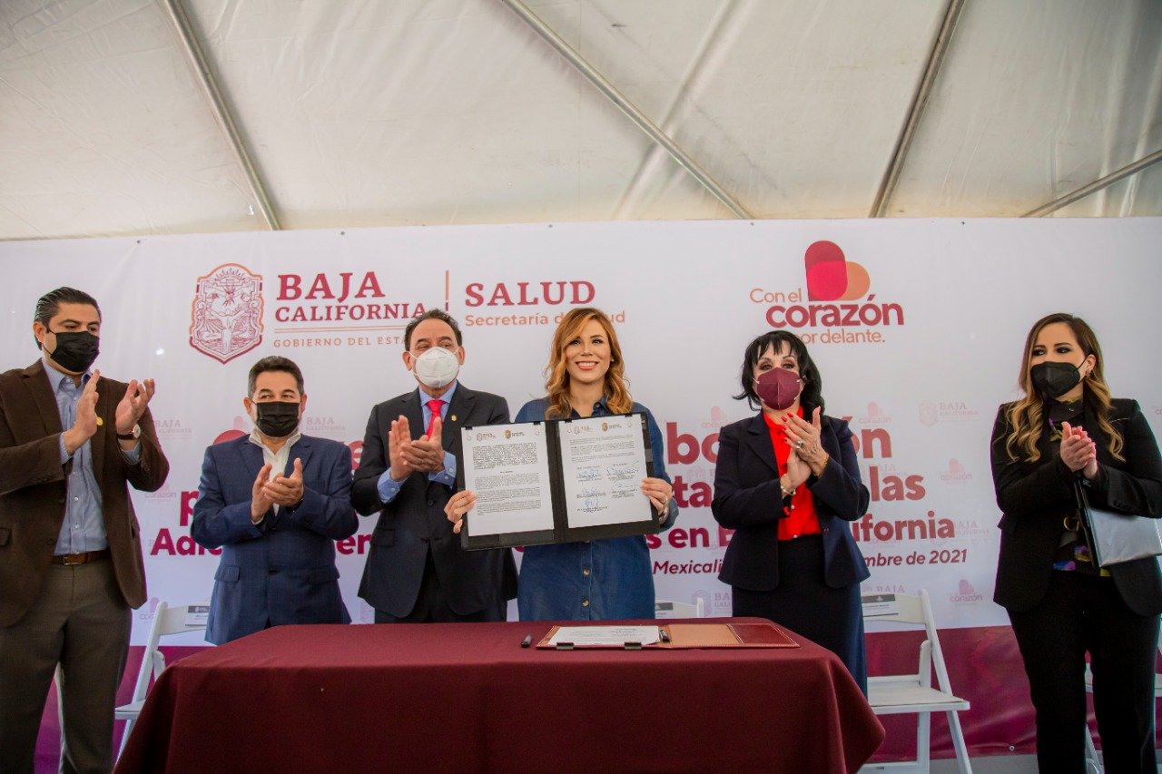 Mexicali, BC.- Como parte de su compromiso de establecer servicios gratuitos para el tratamiento de las adicciones en Baja California, la Gobernadora del Estado, Marina del Pilar Avila Olmeda, suscribió el primer acuerdo de colaboración con el XXIV Ayuntamiento de Mexicali y la Secretaría de Salud para ofrecer, a través del Instituto Contra las Adicciones del Estado, los primeros servicios dirigidos a las y los jóvenes mexicalenses.