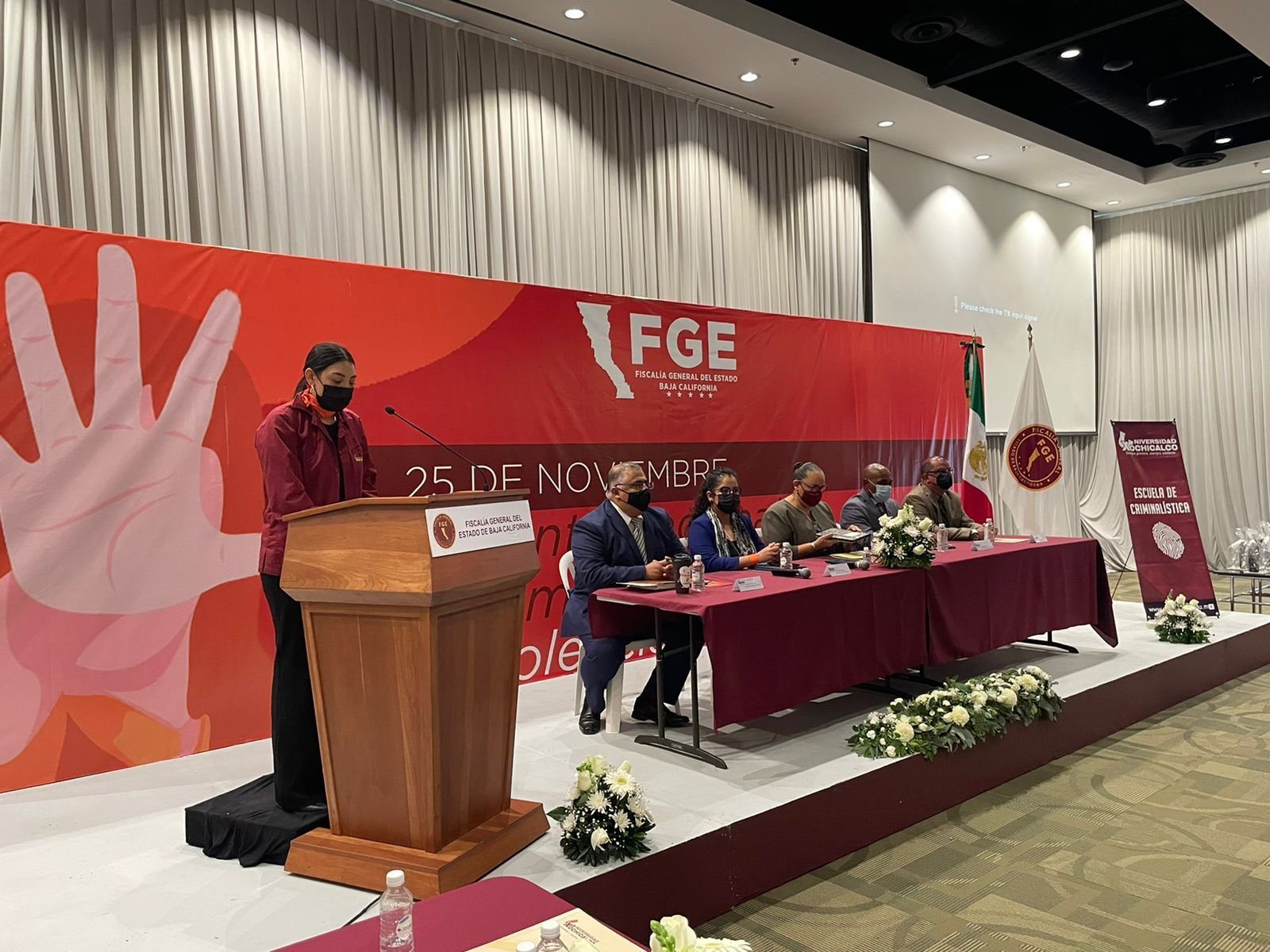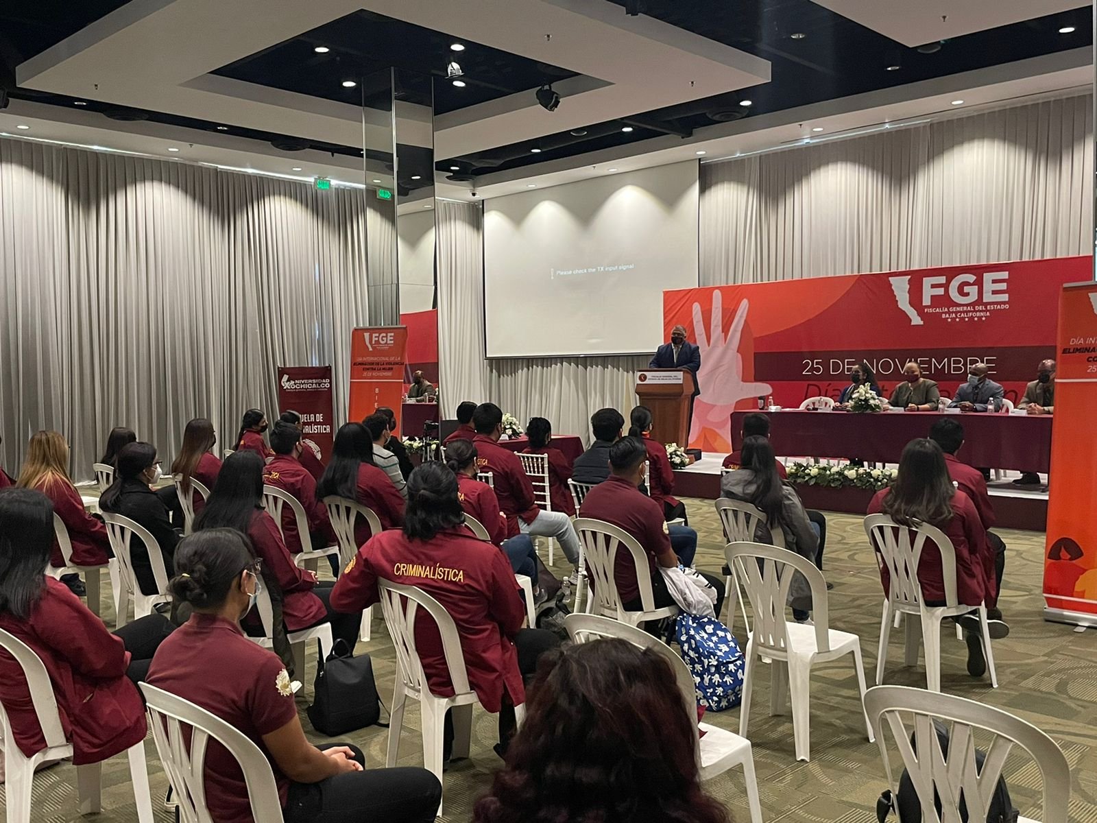 Tijuana, BC.- En el marco de las diferentes actividades realizadas con relación al día internacional de la eliminación de la violencia contra las mujeres, la Fiscalía General del Estado de Baja California por conducto de la Dirección de Prevención Ciudadana del Delito y de la Violencia participaron en el tercer encuentro académico celebrado este día por la facultad de criminalística de la Universidad Xochicalco Campus Tijuana.