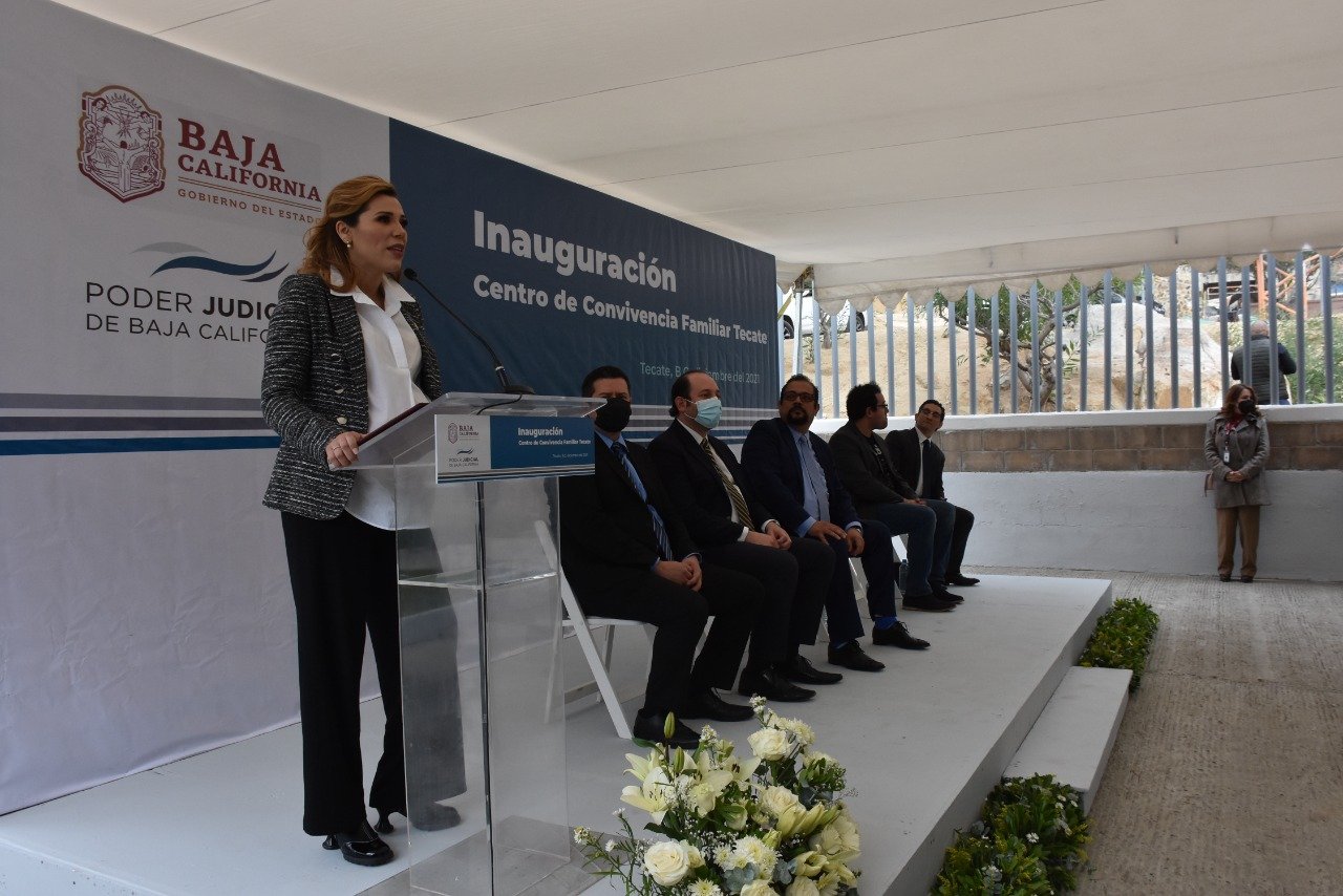 El corte de listón del nuevo Centro de Convivencia Familiar, estuvo a cargo del Presidente del Tribunal Superior de Justicia y del Consejo de la Judicatura, Magistrado Alejandro Isaac Fragozo López y de la Gobernadora del Estado, Marina del Pilar Ávila Olmeda, acompañados del Presidente Municipal del Ayuntamiento de Tecate Edgar Darío Benítez Ruíz, además del Presidente de la Comisión Estatal de Derechos Humanos Mtro. Miguel Ángel Mora Marrufo.