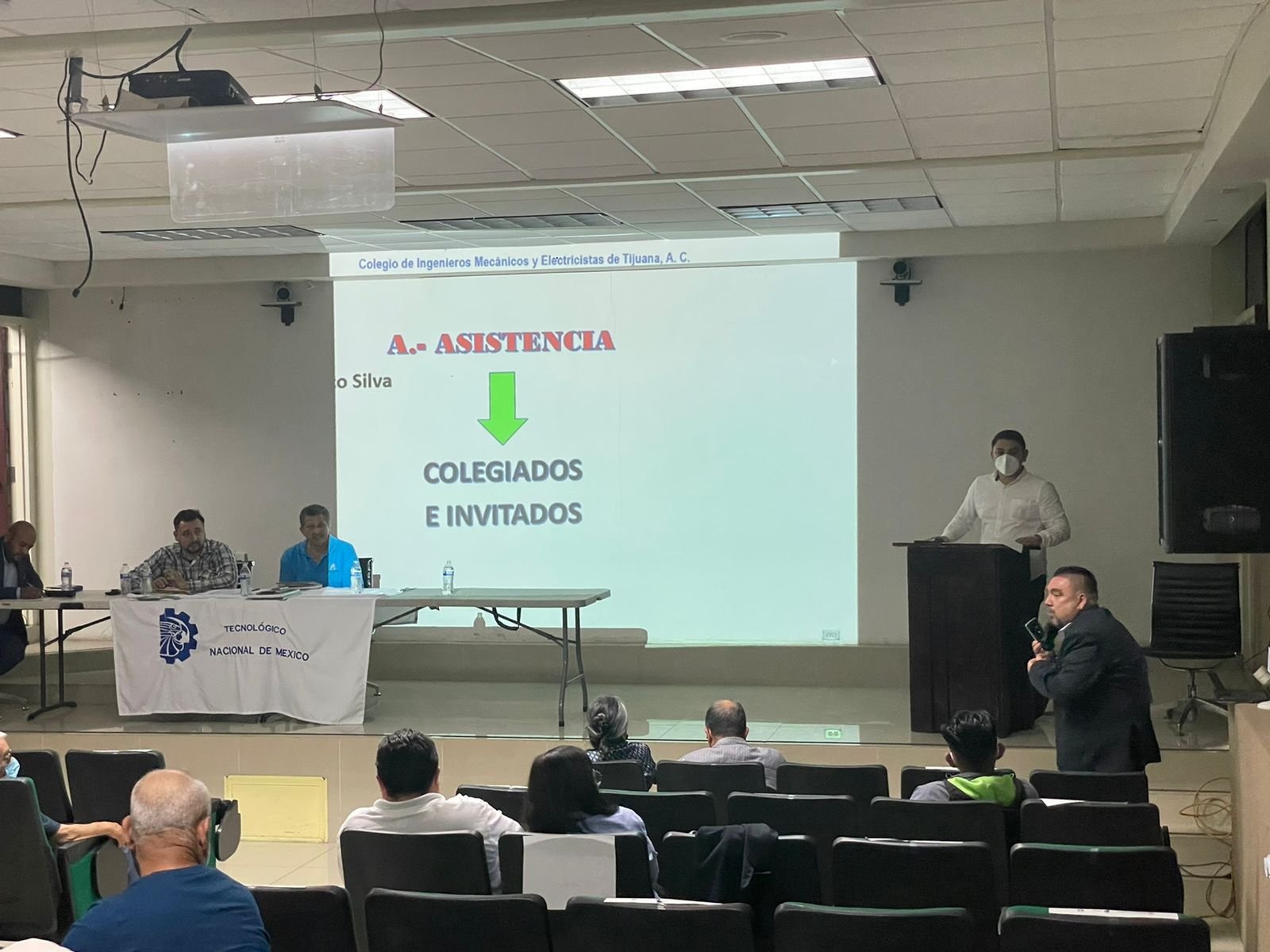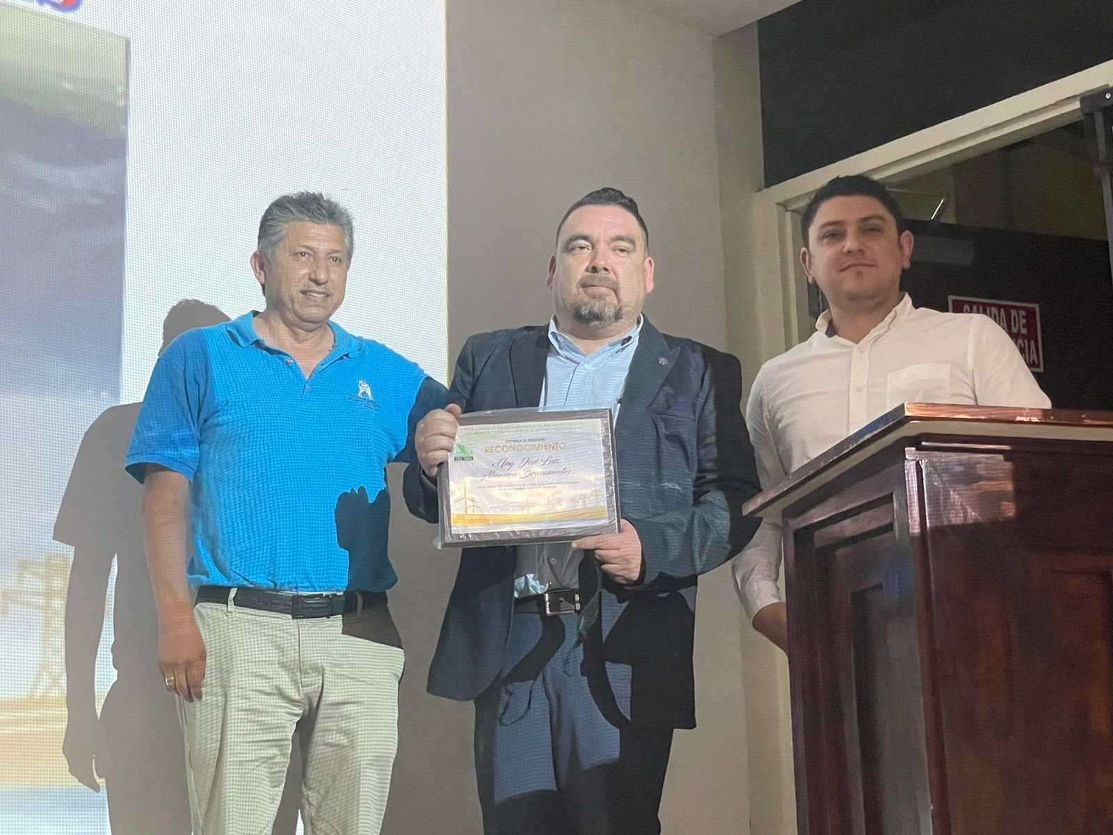 Durante la asamblea ordinaria del organismo, realizada en el Instituto Tecnológico de Tijuana, Víctor Vázquez a nombre de Federación Mexicana de Colegios de Ingenieros Mecánicos y Electricistas (FMCIMEC), hizo entrega de un reconocimiento a José Luis Almanza, ingeniero tijuanense y ex presidente del Colegio en Tijuana.