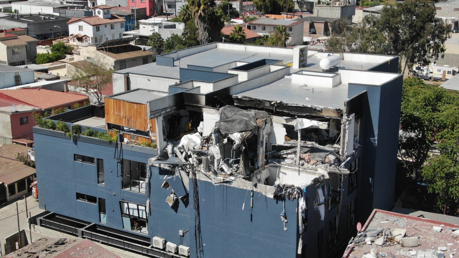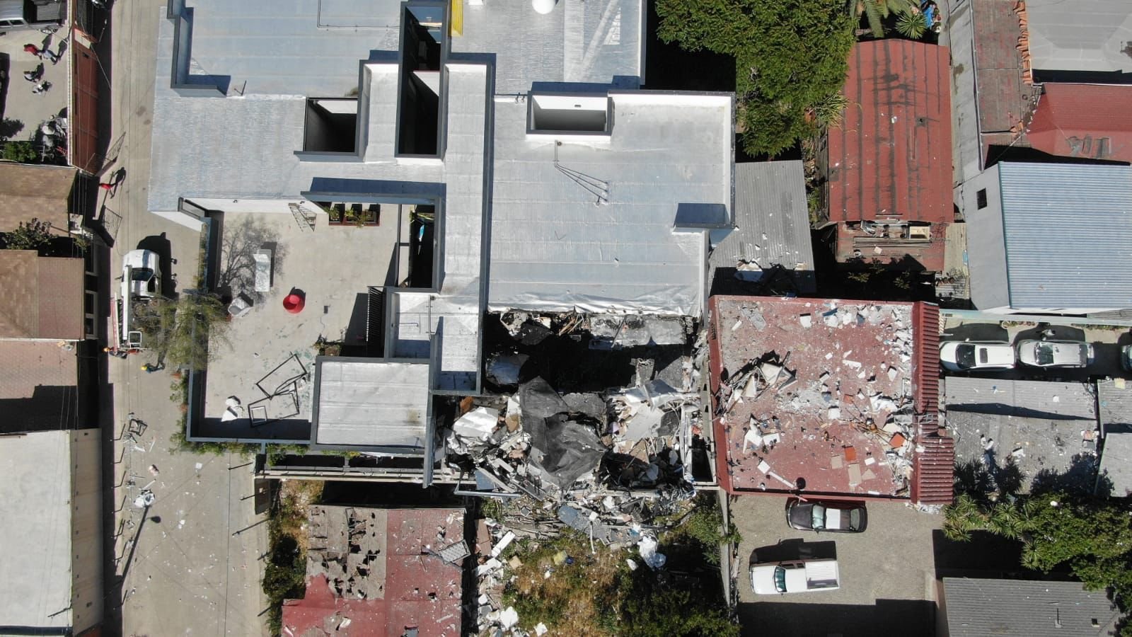 Tijuana, BC.- Un total de 24 viviendas y siete vehículos resultaron afectados, luego de una explosión ocurrida en el callejón Montaño, entre Prolongación Paseo de los Héroes y Ángela Peralta, colonia, Anexa 20 de Noviembre donde una persona perdió la vida y dos resultaron lesionadas.