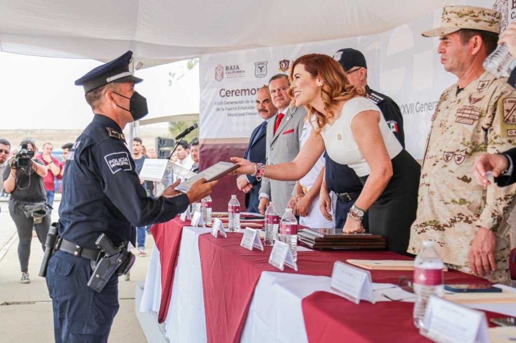 «Siéntanse orgullosas y orgullosos de portar este uniforme, así como nosotros nos sentimos orgullosos de ustedes y sentimos este gran honor de trabajar a su lado, de la mano de personas valientes e íntegras que trabajarán, a partir de este momento, con el Corazón por Delante para velar por la seguridad y la tranquilidad de Baja California», finalizó.