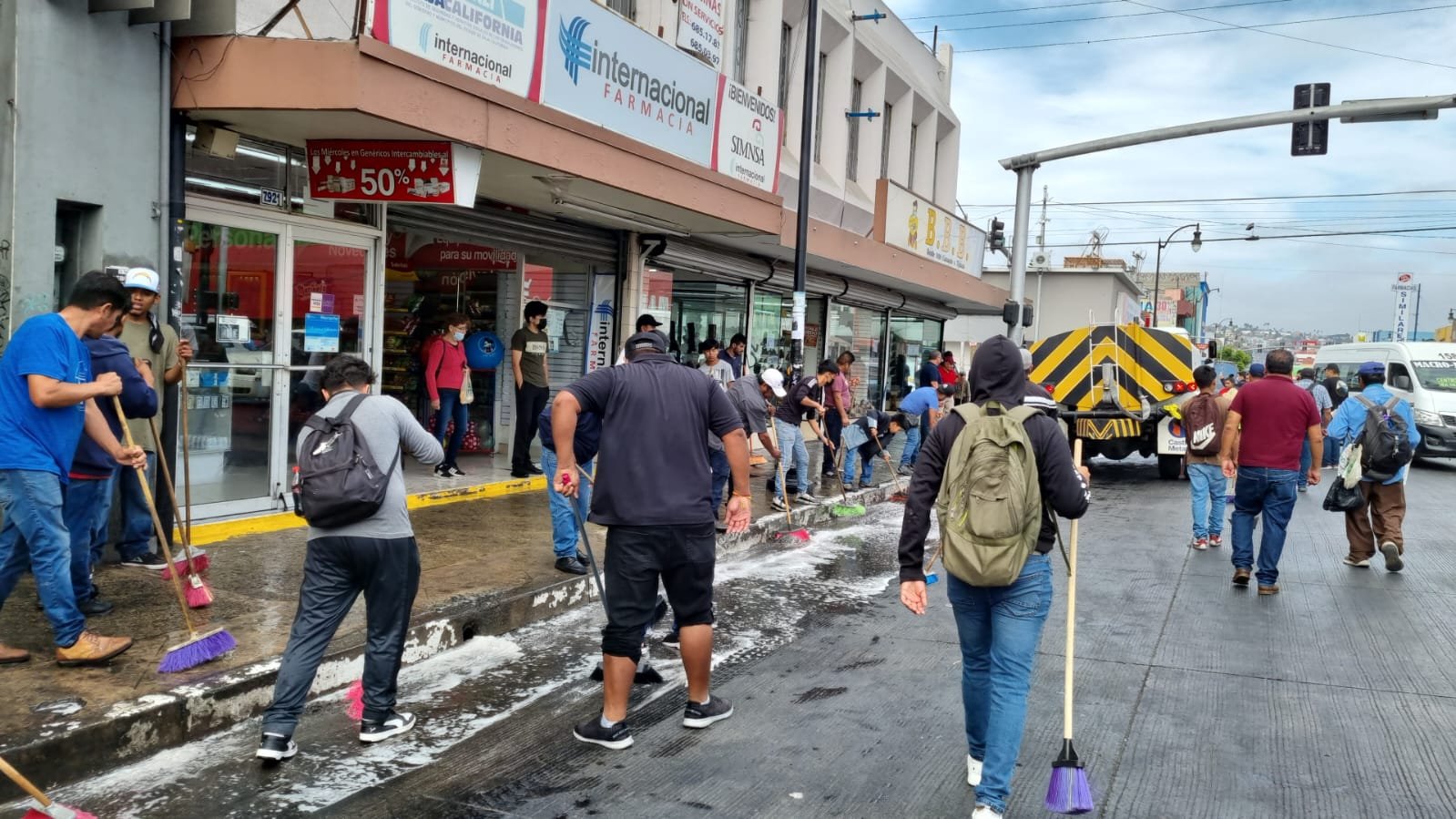 Tijuana, BC. – Como muestra de agradecimiento a una ciudad que les ha brindado oportunidades de vida y desarrollo en sus actividades comerciales, alrededor de 300 comerciantes ambulantes realizaron una jornada de limpieza en el Centro Histórico de Tijuana.