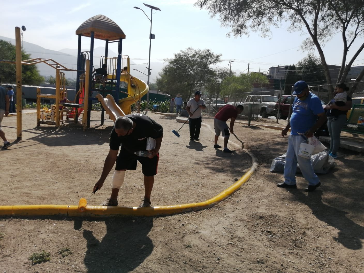 Tijuana, BC.- El Ayuntamiento de Tijuana y vendedores ambulantes pertenecientes a la delegación La Presa encabezaron una jornada de limpia y siembra de árboles en las canchas deportivas de la Avenida Peñón, como parte de las acciones de mejoras del mobiliario urbano.