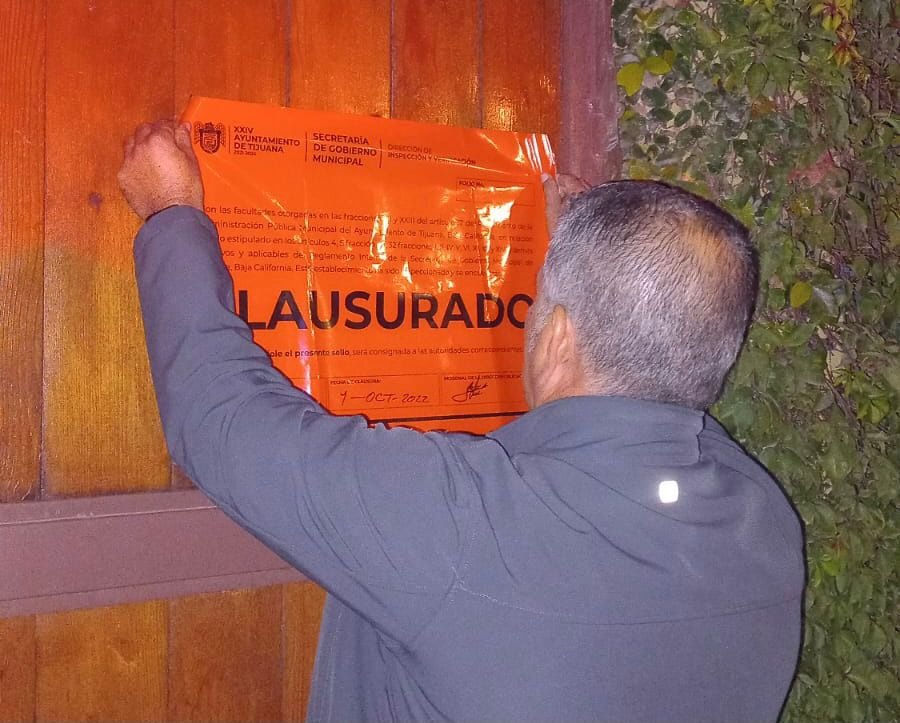 Tijuana, BC.- Por instrucciones de la alcaldesa Montserrat Caballero Ramírez y del secretario de Gobierno Municipal, Jesús García Castro, la Dirección de Inspección y Verificación Municipal clausuró un salón de fiestas por realizar una fiesta clandestina, con menores de edad consumiendo bebidas embriagantes.