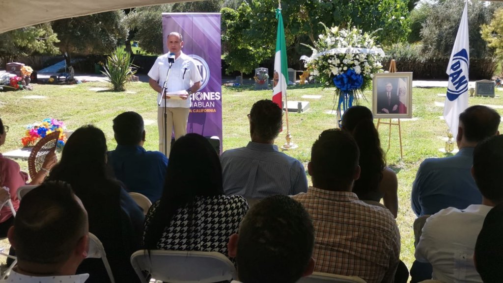 Los panistas se dieron cita en las instalaciones del cementerio Jardín de la Esperanza, para rendir este merecido homenaje, pues recordaron que, a lo largo de su vida política, contendió 3 veces por la gubernatura, fue Diputado Local en 1983, el primer Senador de oposición en el país en 1991 y Secretario General de Gobierno en 1989 en el primer gobierno del cambio de Ernesto Ruffo, señaló durante su intervención el líder estatal panista.
