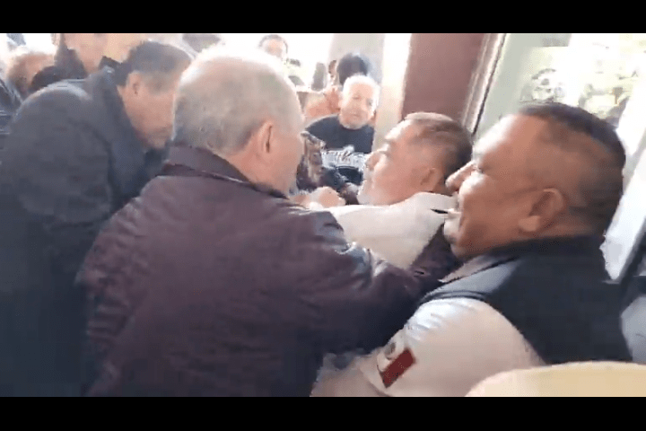 Mexicali, BC.- Un video en redes revela que el diputado Marco Antonio Blásquez Salinas, acompañado de su suplente, Ramón Castorena Morales, agreden a un guardia de seguridad del Congreso bajacaliforniano.