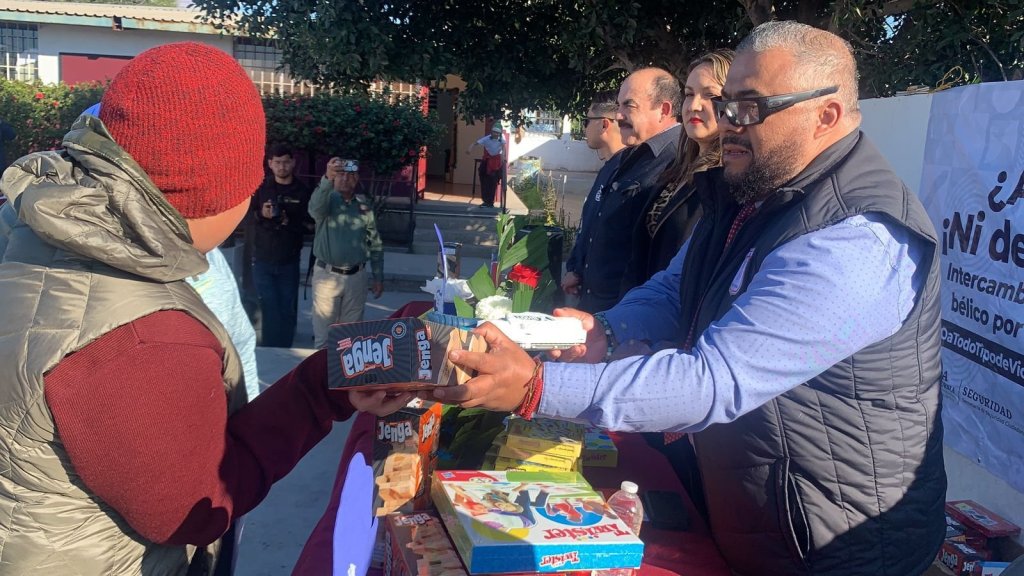 Baja California.- Son hasta este momento 1, 374 juguetes intercambiados en lo que va de la semana dentro del marco de la Campaña de Intercambio de Juguete Bélico por Didáctico que emprendió la Secretaría de Seguridad Ciudadana del Estado de Baja California a través de la Dirección de Prevención Social de las Violencias con el fin de fortalecer la cultura de paz en la niñez de Baja California.