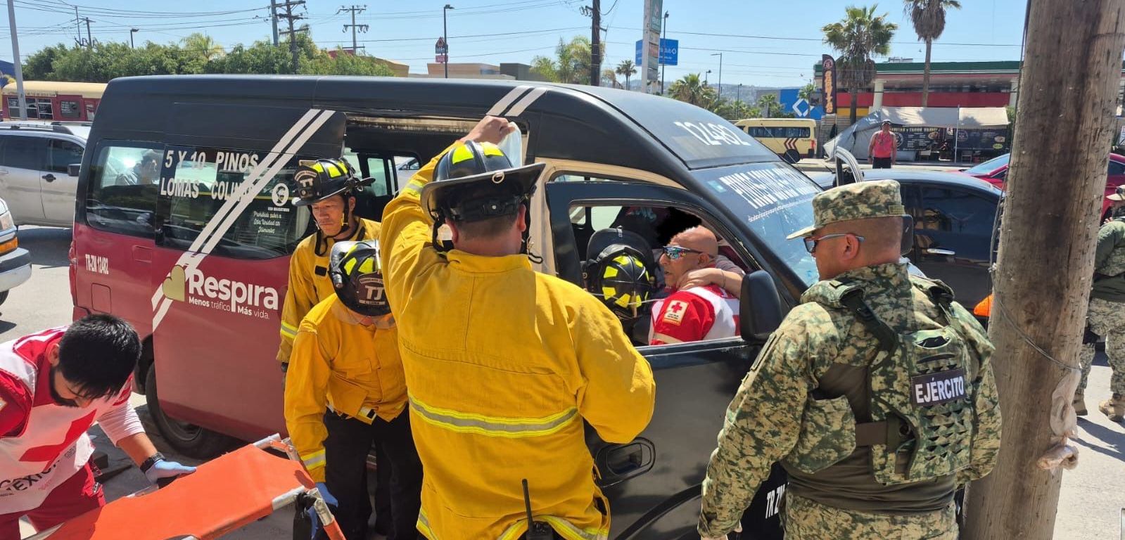 TIJUANA.- Un accidente de tránsito entre un taxi tipo van de transporte público dejó como saldo una mujer con una amputación en la pierna y al menos 12 personas con lesiones menores.