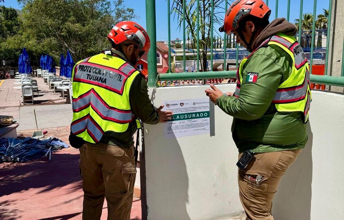 TIJUANA.- El centro recreativo Albercas Las Palmas, ubicado en la avenida Óscar Baylón Chacón del Ejido Francisco Villa, fue clausurado por el XXV Ayuntamiento de Tijuana debido a diversas irregularidades en materia de protección civil que ponían en riesgo la seguridad de sus usuarios.