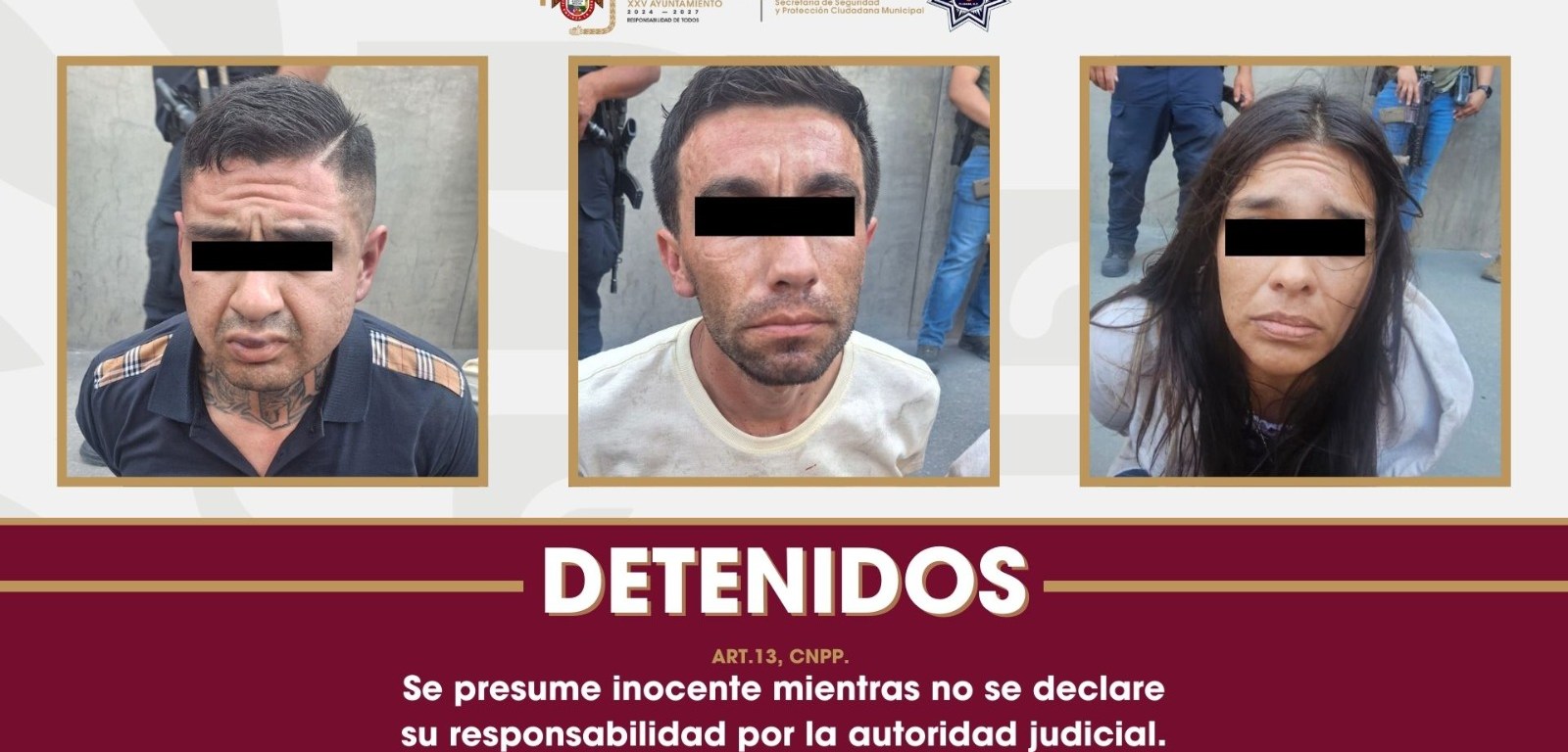 TIJUANA.- La Secretaría de Seguridad y Protección Ciudadana Municipal (SSPCM), informa que gracias a las cámaras de monitoreo instaladas en la ciudad y a la respuesta inmediata de agentes de la Policía Municipal, se logró detener a tres personas señaladas como presuntos responsables de asaltar a un usuario bancario, la tarde de este lunes en el Bulevar Salinas.