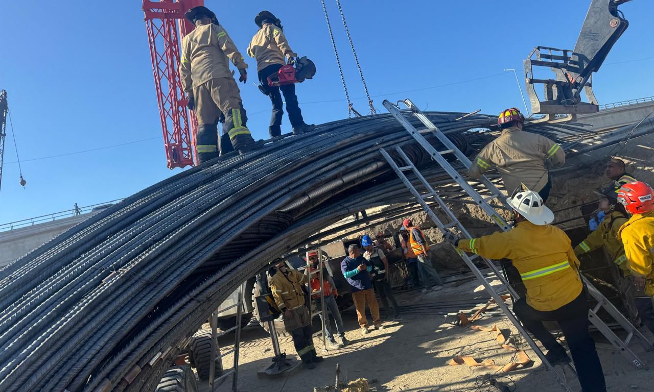 TIJUANA.- La Secretaría de Seguridad y Protección Ciudadana Municipal (SSPCM), a través de la Dirección de Bomberos, llevó a cabo un exitoso rescate de dos trabajadores que quedaron atrapados tras un accidente en la construcción de una torre para el viaducto elevado, ubicado sobre la avenida Internacional, en la Zona Centro.