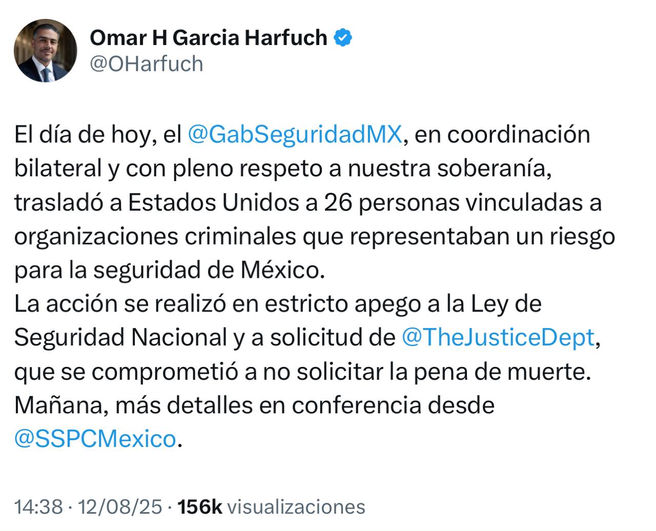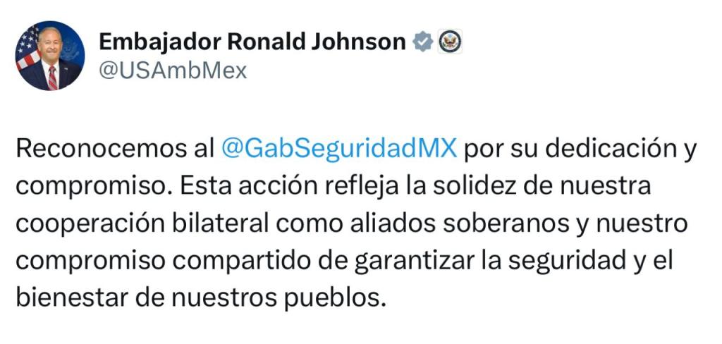 «Todos estos 26 hombres han desempeñado un papel en la generación de violencia y las drogas a las costas estadounidenses; bajo este Departamento de Justicia, enfrentarán graves consecuencias por sus crímenes contra este país. Agradecemos al equipo de Seguridad Nacional de México su colaboración en este asunto».