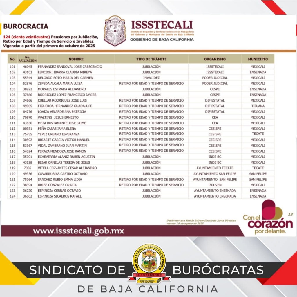 “Cada sección es responsable de revisar e impulsar sus propios movimientos, y nosotros respetamos esa autonomía. El único responsable de validar una jubilación por invalidez es ISSSTECALI”, señala el comunicado.