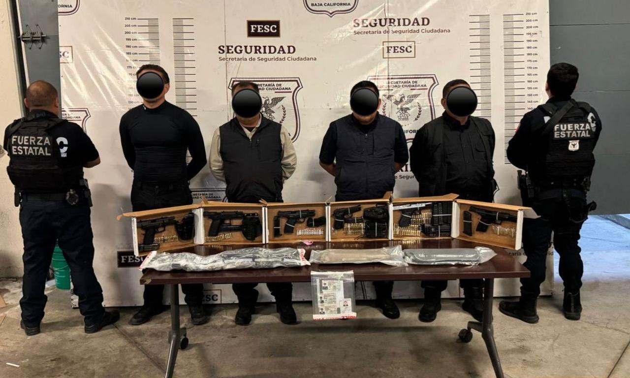 TIJUANA .,La Dirección de Investigación de la Fuerza Estatal de Seguridad Ciudadana (FESC) realizó un contundente operativo en Tijuana que derivó en la detención de cuatro hombres que se hacían pasar como escoltas privados y que portaban armas de fuego de alto poder, además de credenciales sin validez.