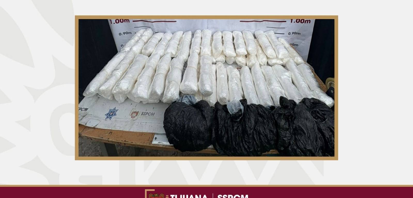 Al arribar al lugar, oficiales se entrevistaron con la parte reportante, quien señaló que en la cajuela de su automóvil desconocidos introdujeron tres bolsas negras de gran tamaño, mismas que retiró y colocó sobre la vía pública. Al verificar el contenido, los agentes confirmaron que se trataba de 56 paquetes en total, distribuidos en tres bolsas, así como 3 geolocalizadores.