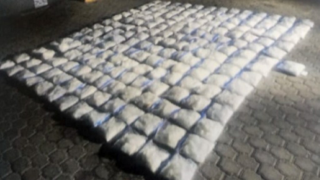 Las autoridades informaron que, durante una inspección a un tractocamión con caja seca, fueron localizados 104 recipientes y 186 bolsas plásticas con droga, lo que derivó en la detención del conductor y su acompañante.
