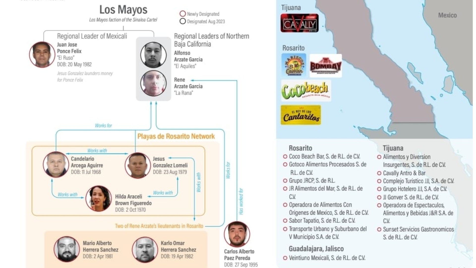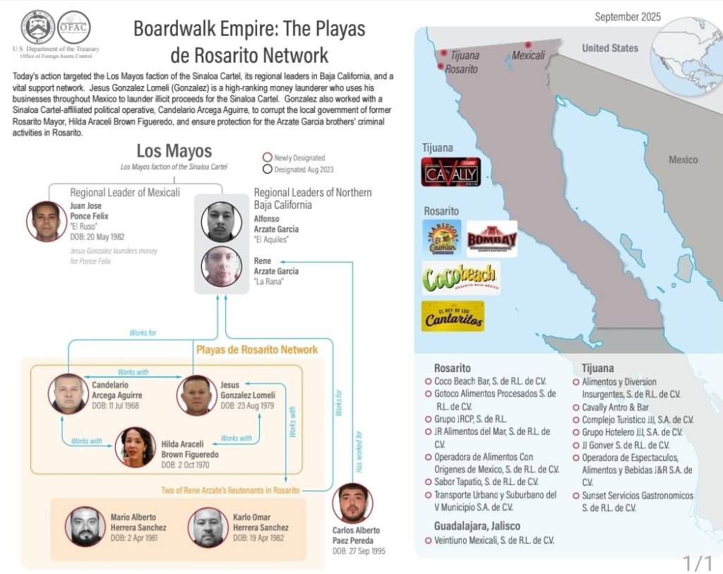 La Oficina de Control de Activos Extranjeros (OFAC) reveló que la facción Los Mayos del Cártel de Sinaloa consolidó en Playas de Rosarito un entramado criminal y financiero conocido como el “Imperio del Paseo Marítimo”, en el que participaron empresarios, operadores políticos y autoridades locales.
